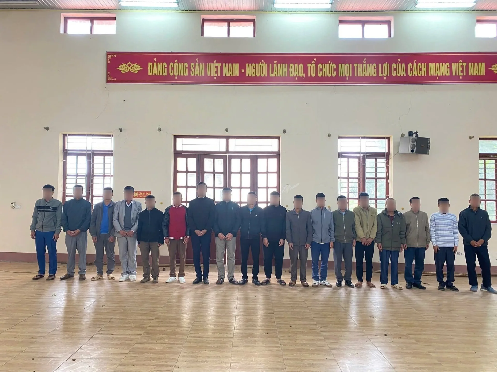 Tại hiện trường, cơ quan chức năng đã tạm giữ 18 đối tượng, tất cả đều trú tại địa bàn xã Đại Sơn. Danh sách các đối tượng bị bắt gồm: Hoàng Văn Đ (1983), Hoàng Văn K (1975), Vi Văn C (1967) cùng trú tại thôn Đồng Chanh; và Ngô Văn V (1981), Vi Văn T (1974), Vi Văn T (1976), Vi Văn H (1983), Bế Văn T (1985), Ngô Văn T (1981), Vi Văn L (1984), Chu Văn X (1976), Nguyễn Văn H (1976), Vi Văn C (1983), Phạm Văn Q (1973), Vi Văn T (1987), Hoàng Văn D (1974), Ngô Văn Đ (1981), Vi Văn K (1975) cùng trú tại thôn Trung Sơn.