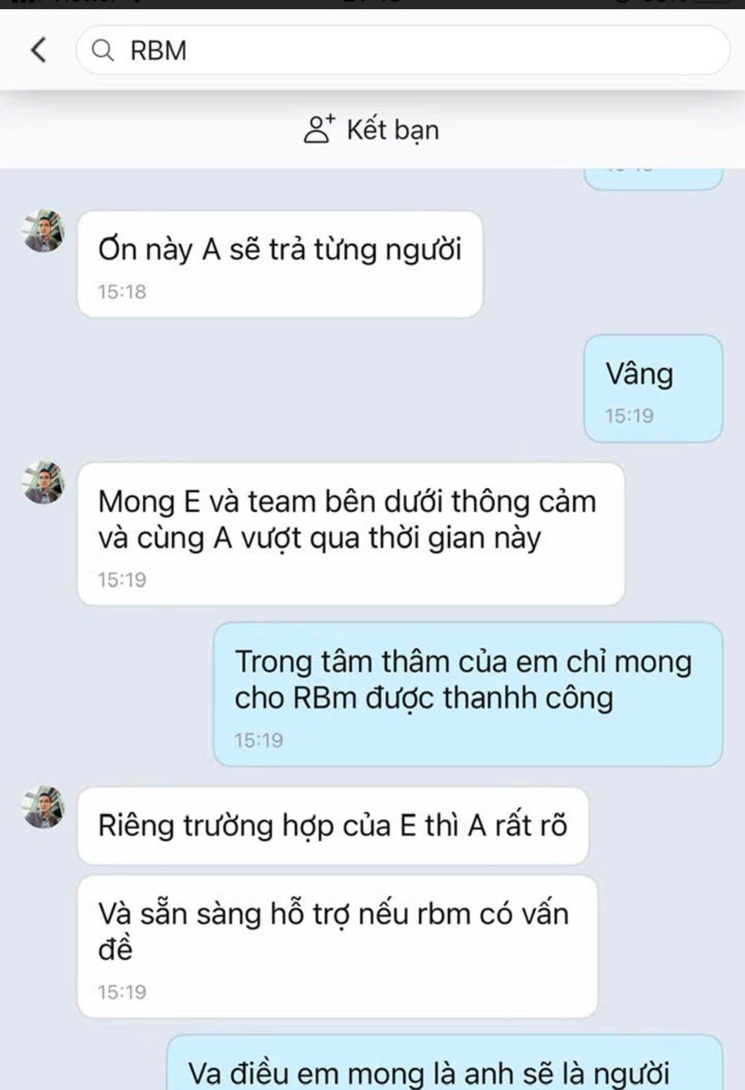 Nguyên văn lời hắn: "Xin được đề xuất E không gửi đơn kiện", "Nên A mong E không tham gia kiện tụng với team đó", "Cho A thêm thời gian".