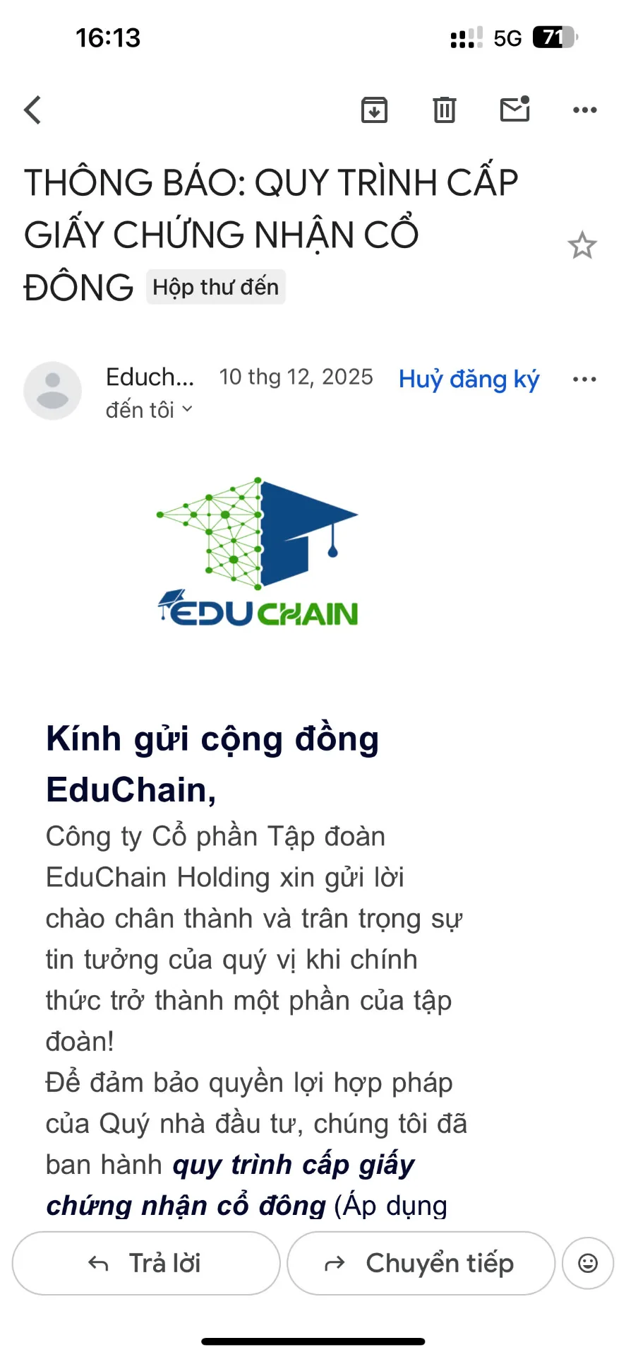 Ngày 04/01/2026, một tổ chức có tên Fincare tổ chức Zoom "Khai xuân rực rỡ". Họ công bố giải pháp "giải ngân" cho cộng đồng EduChain. Nghe có vẻ tốt đẹp phải không? Nhưng hãy đọc kỹ điều kiện: